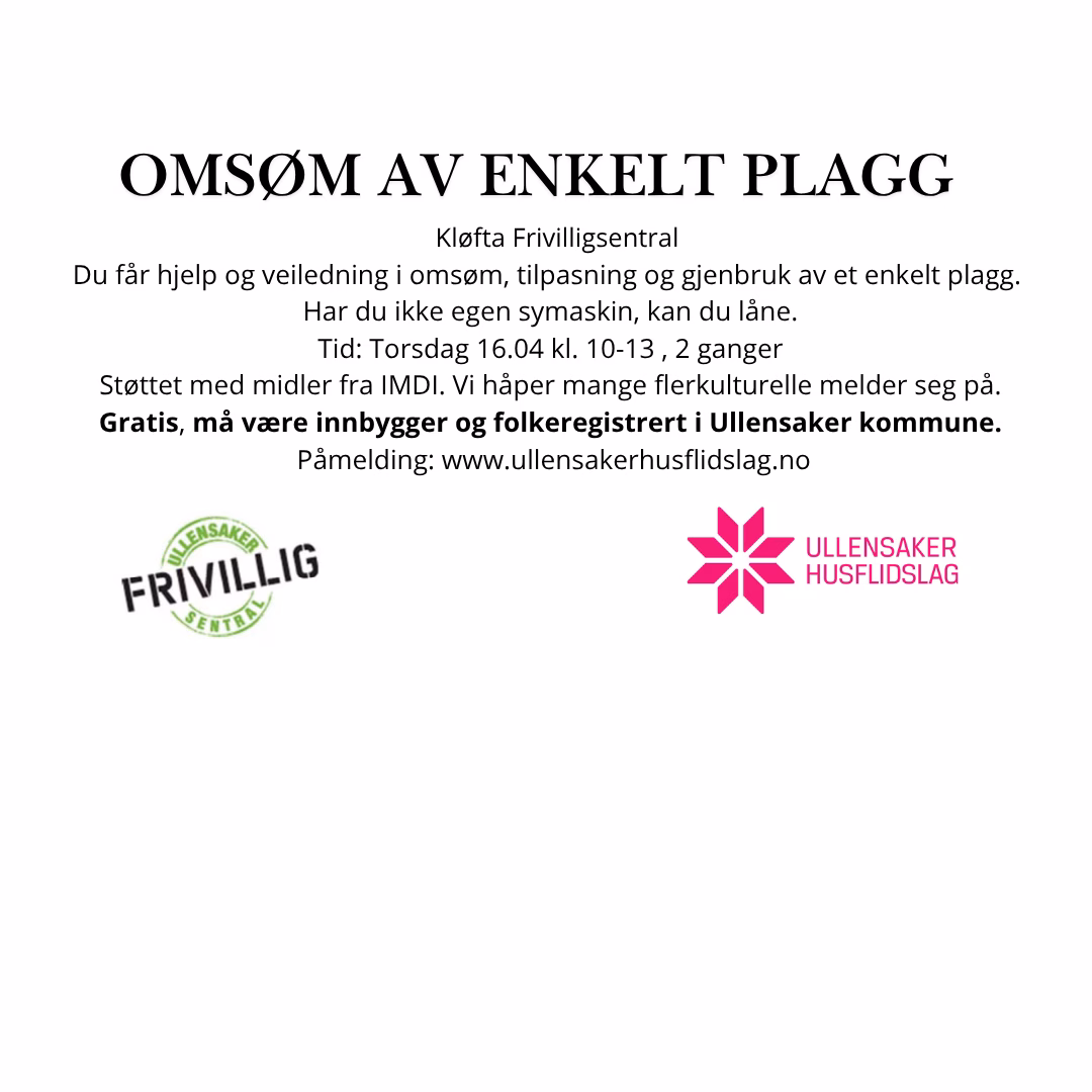 Vår 26-35 Omsøm av enkelt plagg, Kløfta Frivilligsentral, Kløfta